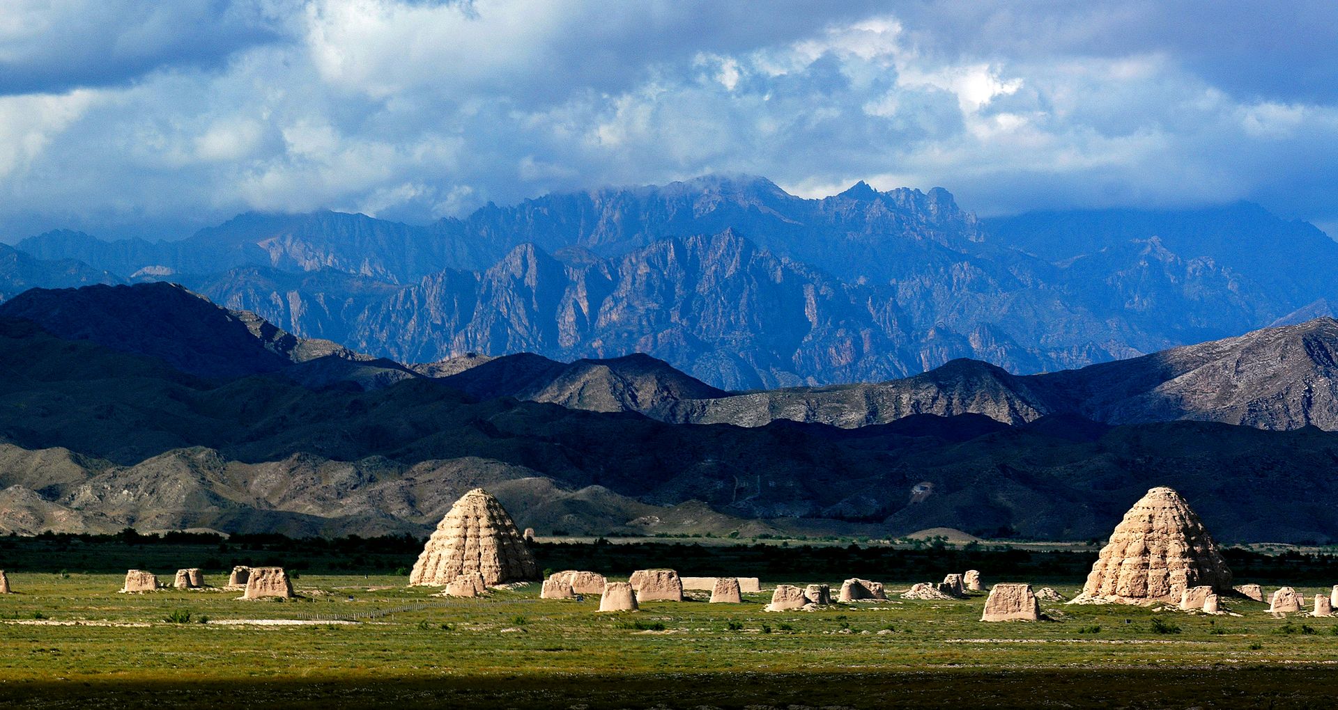 The Xixia Mausoleum District is located on the eastern foothills of Helan Mountain, about five kilometers east to west and ten kilometers north to south. Within an area of more than 50 square kilometers, it follows the natural rise and fall of hills and ridges, with 9 imperial tombs and more than 200 accompanying tombs of princes and nobles. The scale of Xixia Mausoleum District is comparable to that of the Ming Dynasty Thirteen Tombs in Beijing. The ground buildings of the cemetery are all corner towers, gate towers, stele pavilions, outer city, inner city, Xian Hall, tower shaped tomb platform and other architectural units. The overall layout of the plan is a vertical rectangle, arranged in a symmetrical format according to the traditional Chinese pattern of using the north-south centerline as the axis. The Western Xia Mausoleum constitutes a unique form of Western Xia architecture in China's cemetery architecture.
